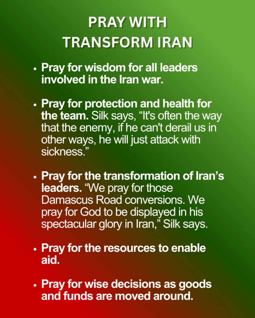 Ziehen Sie als Ergebnis Ihrer Gebete eine finanzielle Unterstützung in Betracht Transform Irandie vielseitige Arbeit von Transform Iran. Ihr Team leistet Hilfe, erweitert die Trauma-Beratung und bildet Evangelisten aus, die den Menschen im ganzen Iran dienen.